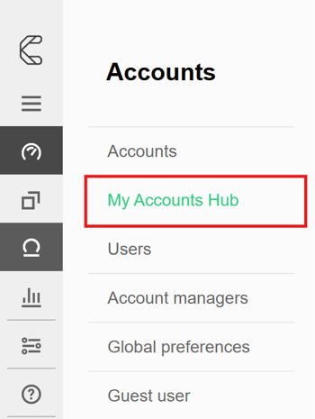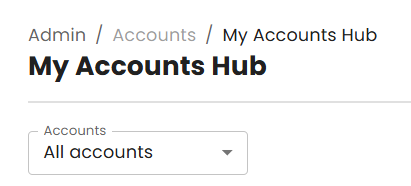 To access the Account Hub via the admin area, head to Accounts > My Accounts Hub.