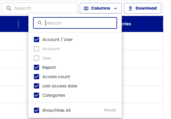 Users can use the 'Download' option to retrieve an Excel version of the data shown in the table.