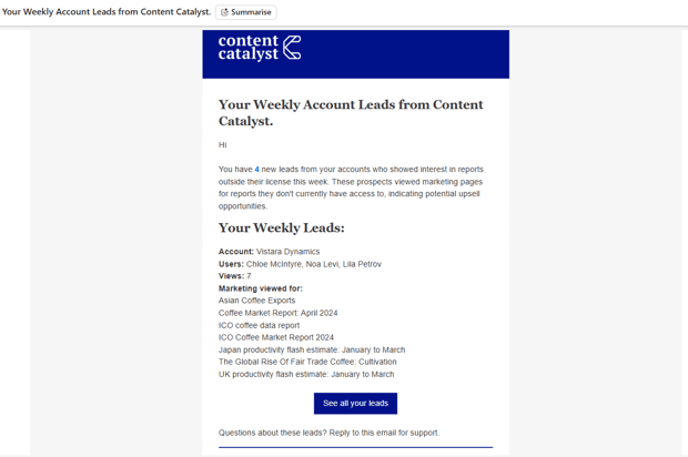 Users set as 'Account Manager' will receive weekly emails that deliver a comprehensive digest straight to their inbox, highlighting key account activity and flagging potential expansion opportunities.