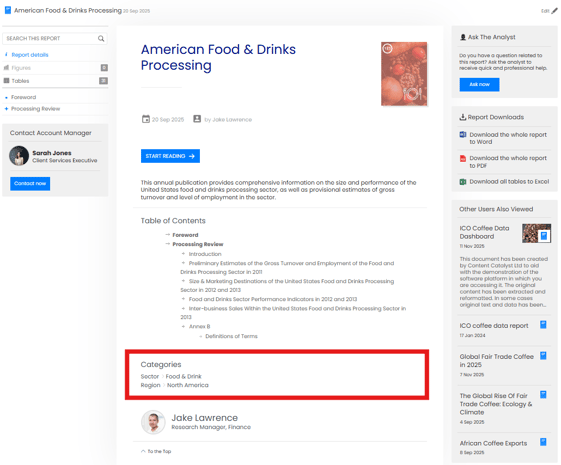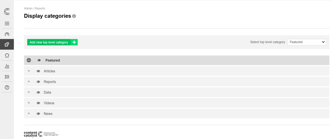 Display categories act as containers for all reports uploaded to Content Catalyst. They are used for organising, searching and licensing your subscribers' content.