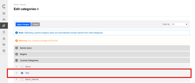 Select the chosen category or categories and 'Apply changes' to save.