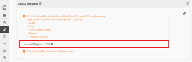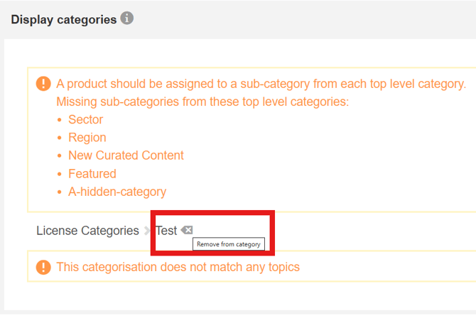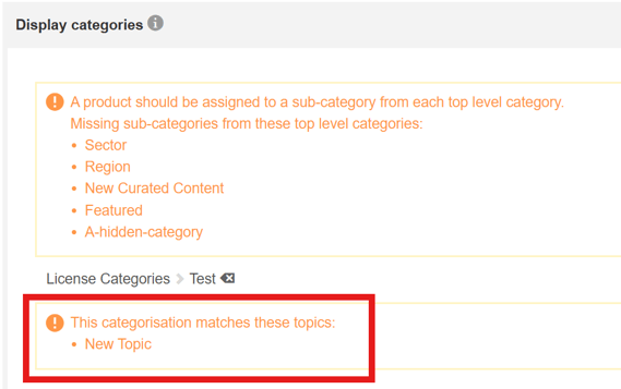 If no categories match topic groupings, the message 'This categorisation does not match any topics' will be displayed.