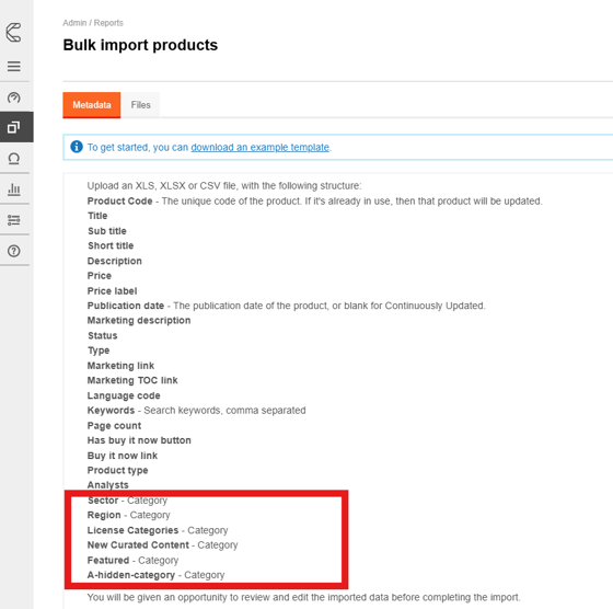 🔔Note: For more infomation on bulk importing see Bulk Upload Reports (Metadata)