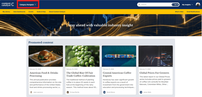 Selecting a category from the Navigator will take the user directly to the Category Hub.