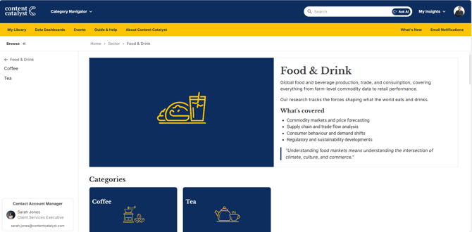 The food & Drink Category Hub dispayed below.