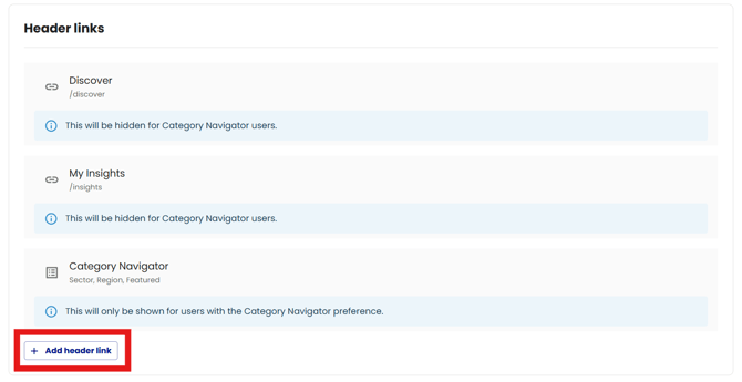 Select the Add Header or primary Link + options highlighted below.
