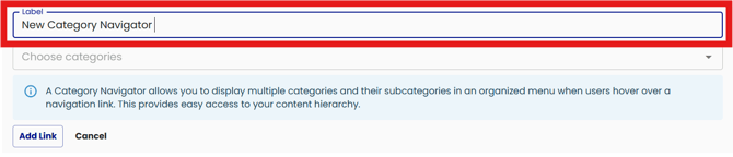 Use the label field to add a label to the Category Navigator.