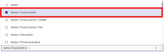 For example: Sector / Food & Drink is a sub level category.