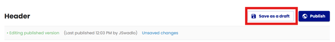 To save any changes, ensure to select 'Save as draft' before exiting the Header area.