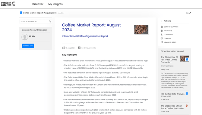 - Copy to clippings function – for later reading, sharing, or to allow users to build bespoke reports of their own from multiple sources