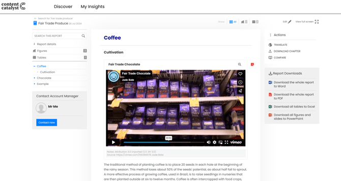 The Content Catalyst Vimeo integration allows you to embed videos alongside other commentary and analysis.