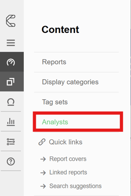 Once analysts have been created, they will appear in the Showcase left-hand menu. Selecting an analyst from this menu will highlight the associated reports.