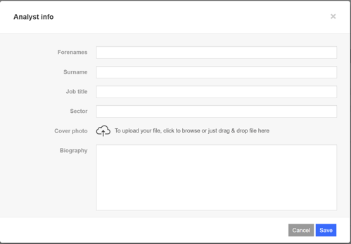 Add the relevant details, including a biography which will appear on the report landing pages.