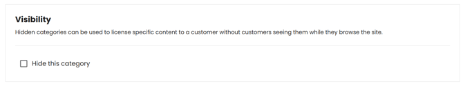 Hidden categories can be used to license specific content to a customer without other customers seeing these while they browse the site.