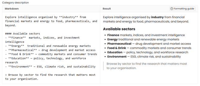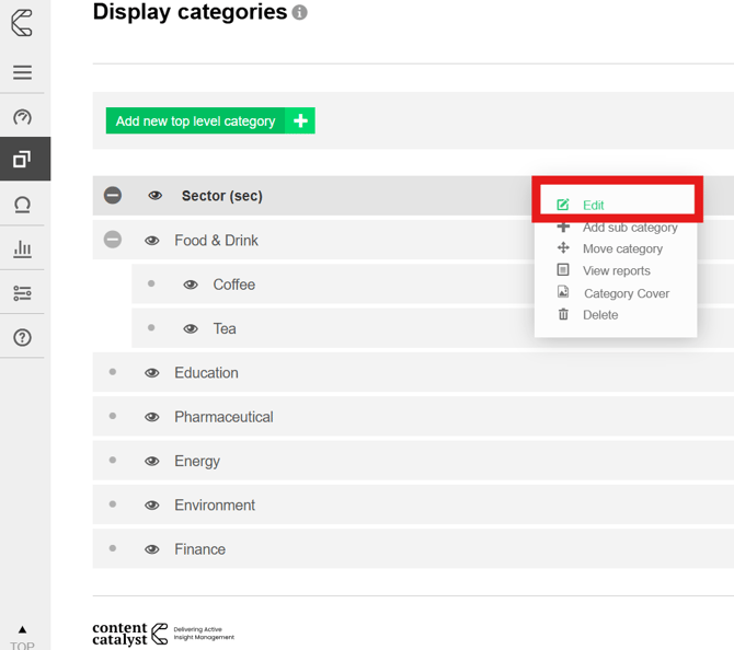 🔔Note: To change the ordering of Categories, please contact support@contentcatalyst.com for more information.
