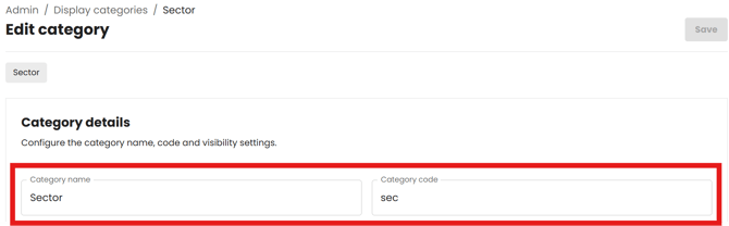 The Edit Category area allows site admins the option to configure the site's display categories.