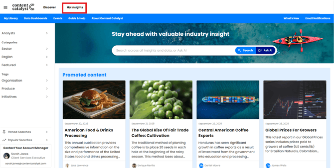 Sites with the Showcase page enabled will find that the clippings area has been moved to the 'My Insights' area, highlighted below.