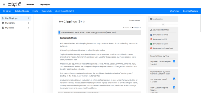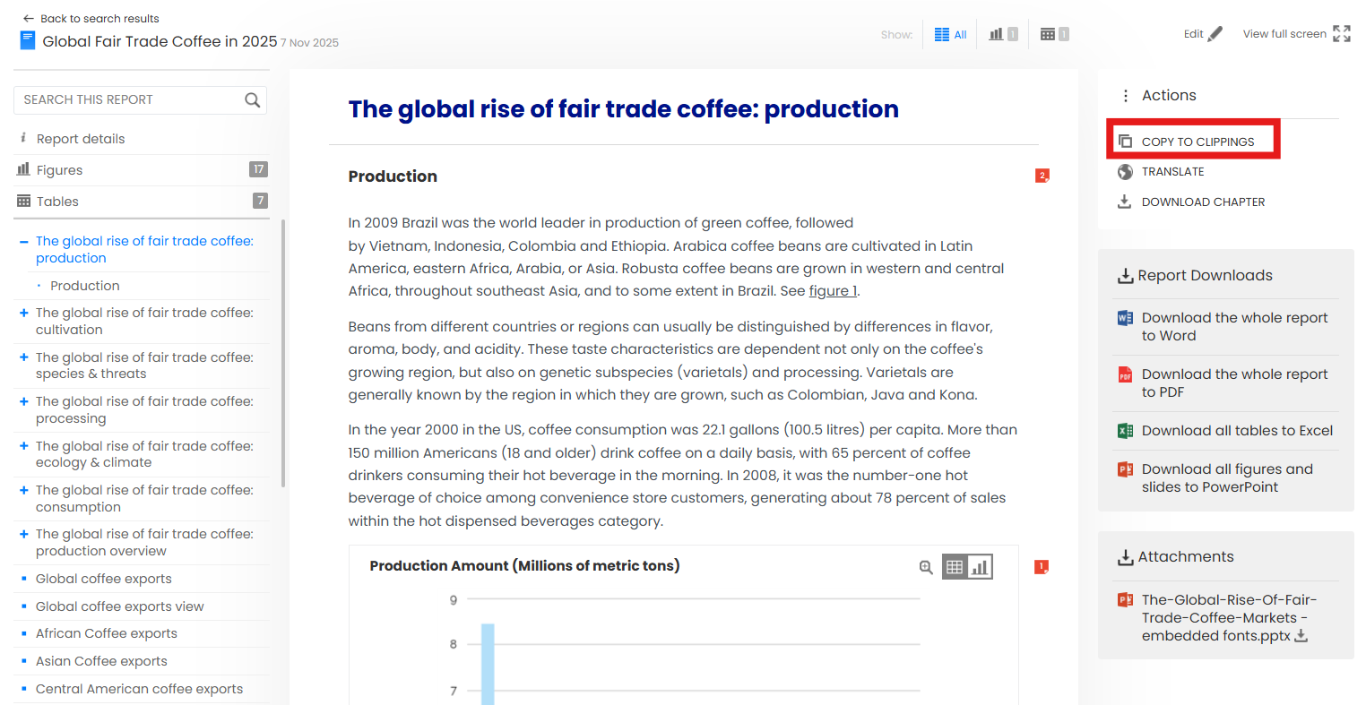 Clippings allow users to pull out an unlimited number of content sections, tables, or figures to their clipboard and combine these clippings into their own bespoke reports.