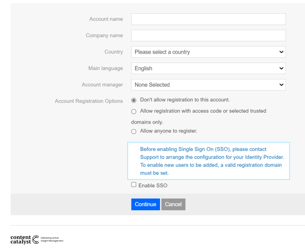 - Account Manager - Contact details for this account’s sales manager. If these fields are blank, then the publisher’s general contact information will be shown to users.