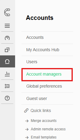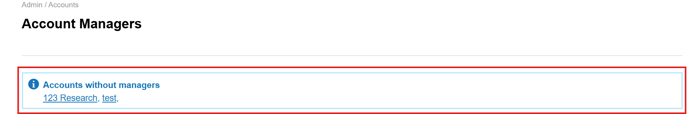 To view a list of existing accounts without an account manager assigned, go to Admin > Accounts > Account managers.