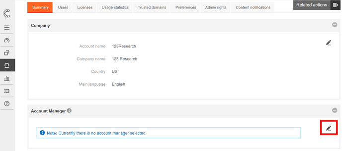 Once the account manager has been created, they can be assigned to manage an account via the accounts admin area.