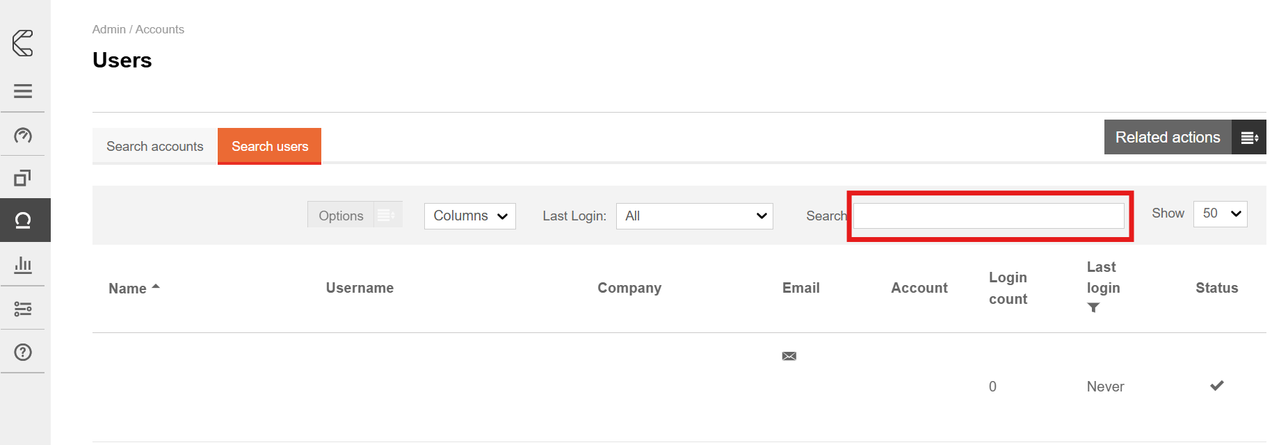1. Go to the Accounts section of the admin interface and click Users.