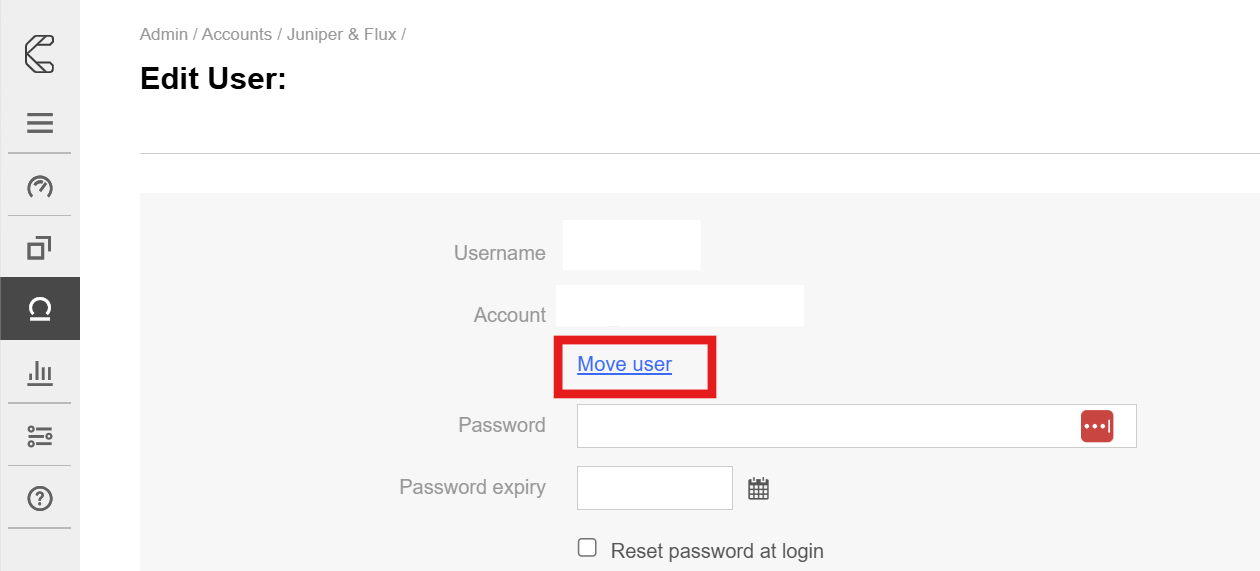 You can move a user to a different account by following these steps.