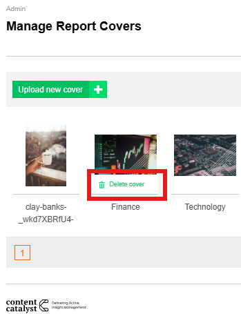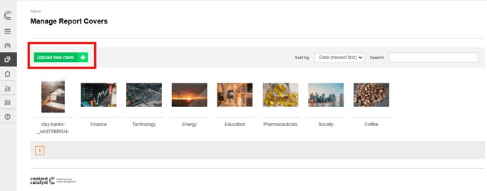 2. This will display the current report covers. Click Upload new cover to add a new one.