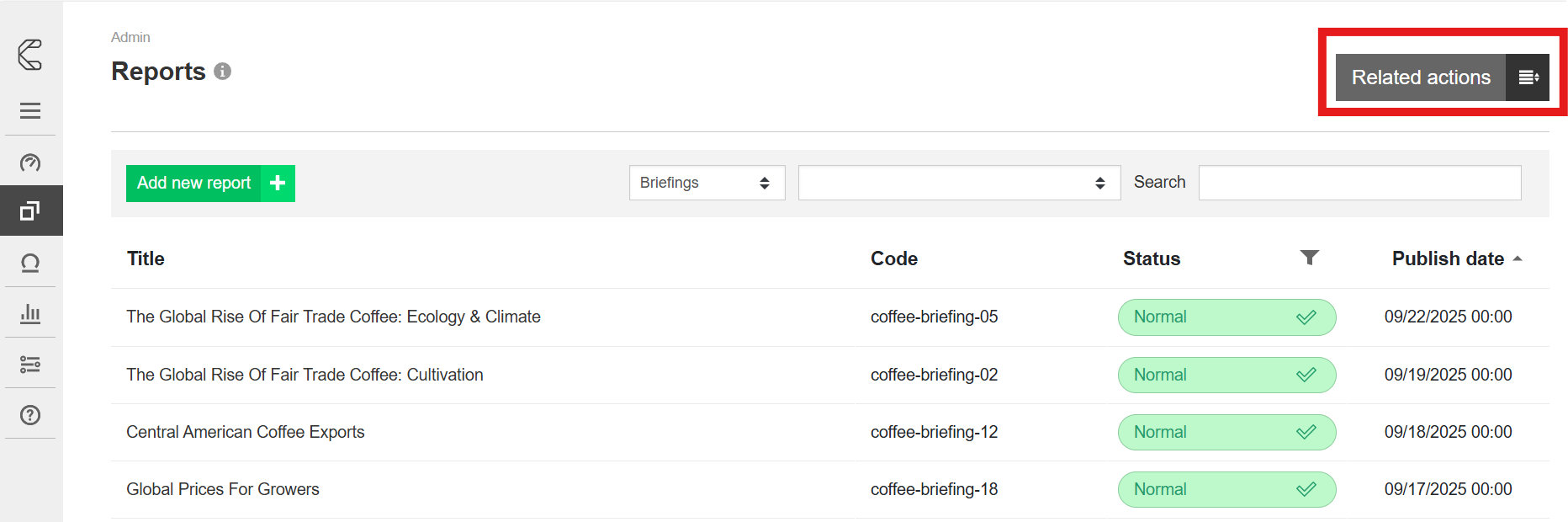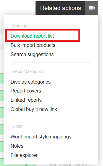 1. Head to Admin > Reports > Related Actions > Download report list.