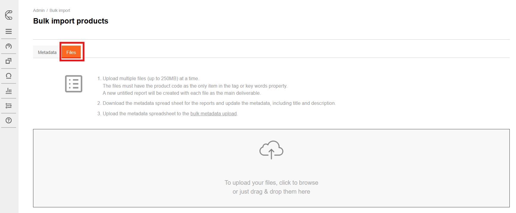 3. Then, you can fill out the exported template with your report metadata, click Files, and import it to your site.