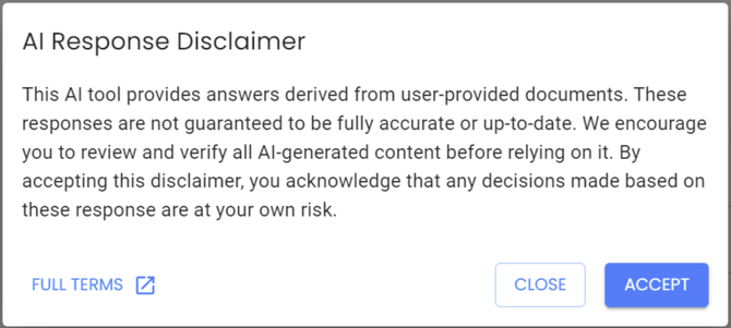 Administrators can set a required inline disclaimer after each response is generated.