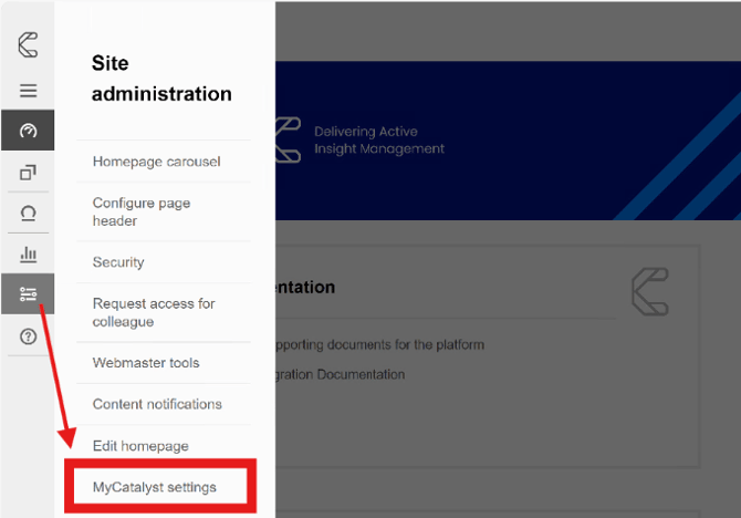 Site Administrators can access the MyCatalyst settings area via the ‘Site Administration' side menu.