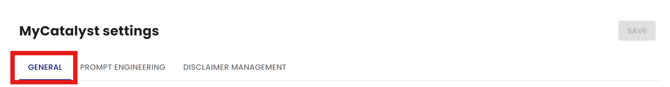 The MyCatalyst Settings area allows administrators to manage the AI Chat tool settings.