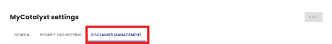 See the settings available under the Disclaimer Management tab below.