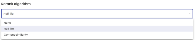 The rerank algorithm dropdown sets the age of content that should be used in the returned responses. See the dropdown options below.