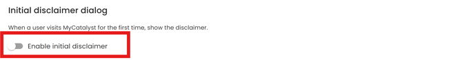 Users can be prompted to accept the disclaimer when first using the tool if the initial disclaimer is set using the toggle below.