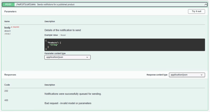 This is achieved using the POST /Notifications API endpoint.
