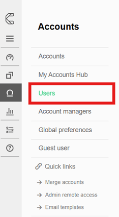 1. Go to Admin > Accounts > User and select the relevant user.