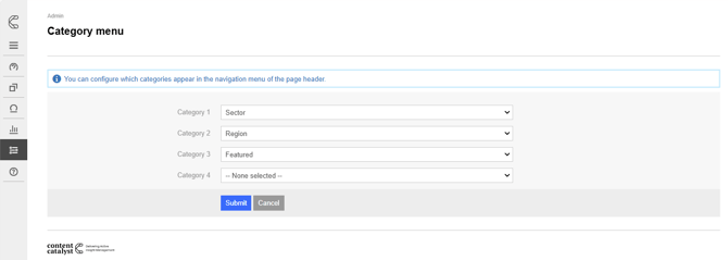 2. From here you simply select your chosen categories from the drop-down menus for Category 1 - 4 and click Submit.