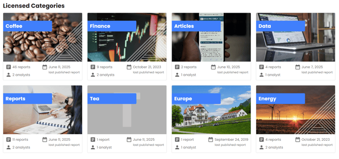 Show subscribers the categories they have access to, reinforcing value and driving deeper engagement. Categories that contain published, licensed content will only appear in this section.