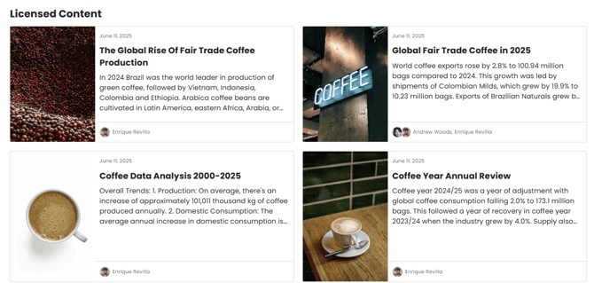 List recently published, frequently read content to encourage subscribers to explore your content library. The Popular Reports section can be configured to include a preview of content outside of the users’ license, encouraging sales.