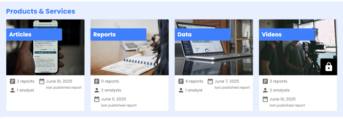 Display the latest reports the subscriber is licensed to access, sorted by publish date. Keeps content fresh and front of mind.