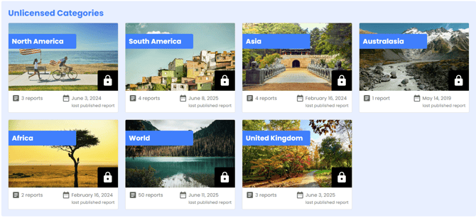 Highlight recently published reports outside a user's license to create upsell opportunities and spark interest.
