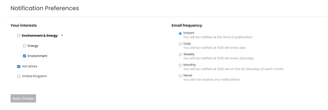 Users can set their own personalised Content Notification preferences interests and email frequency If this has been enabled for the user.